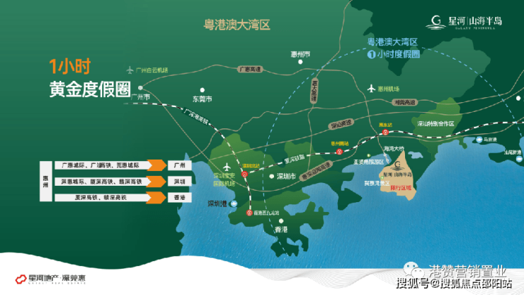 项目位于惠东县巽寮滨海旅游度假区,现有4高速、1高铁、1机场,规划2高铁1航线,实现海陆空全覆盖立体交通网,深港1.5小时黄金度假圈。
