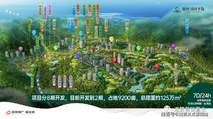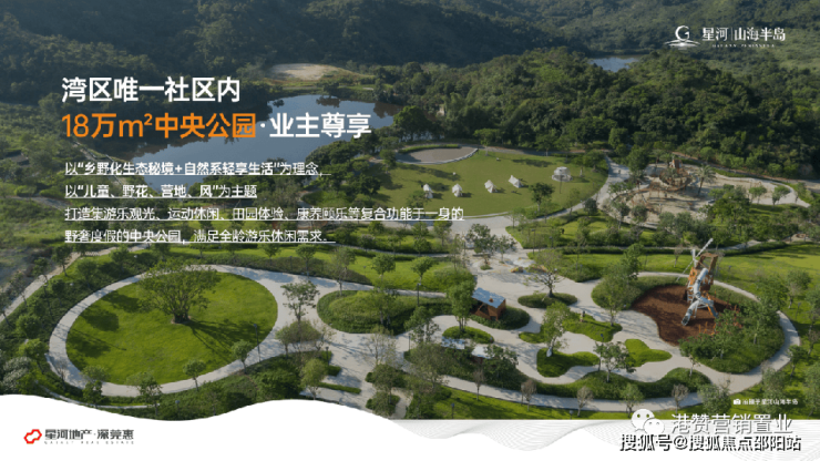 在项目的开发上,更是不遗余力的打造有:“十佳非凡高尔夫球场”的星河山海半岛高尔夫;对标巴厘岛“金巴兰”东南亚风格的高端星度假酒店;专门为业主打造的18万m²的中央公园;以及满足生活的山海特色商业街等。