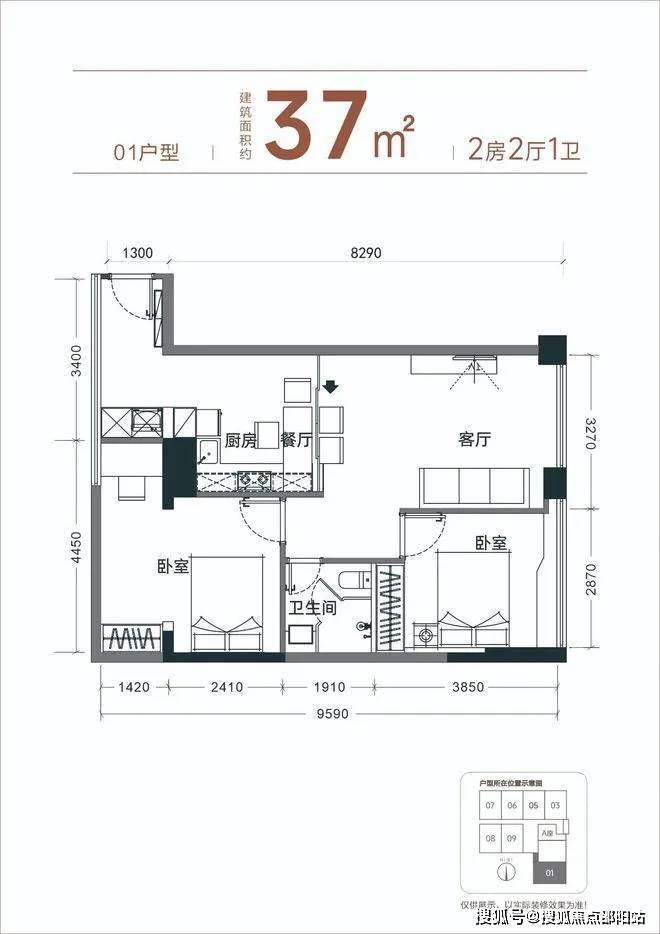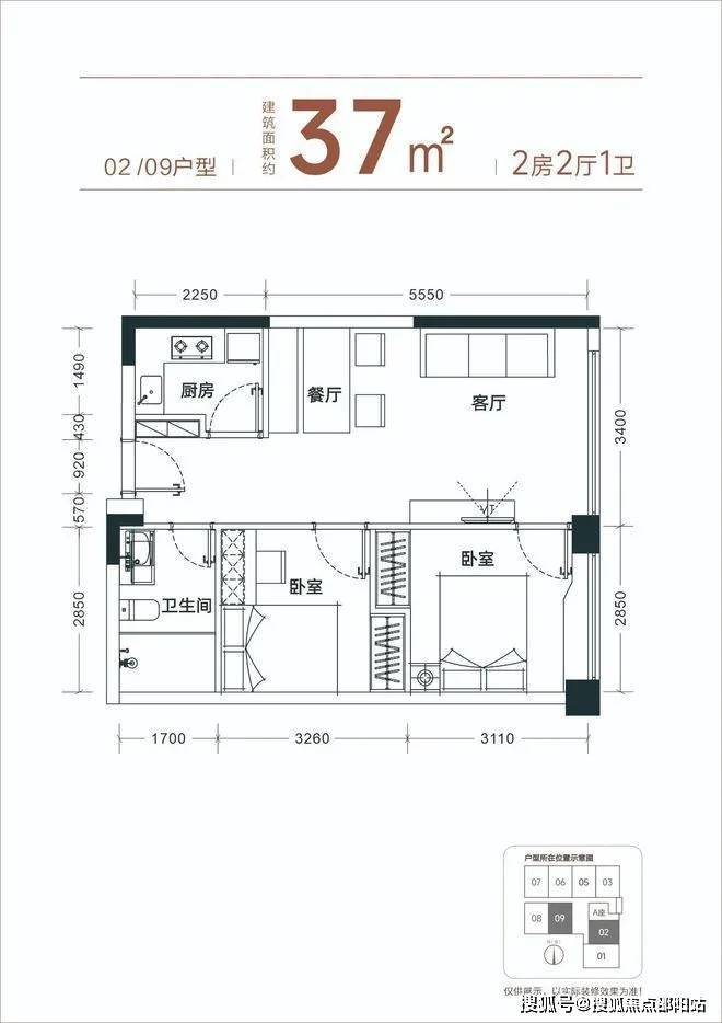 【产品面积】约37㎡小两房(实际套内使用面积接近54㎡)