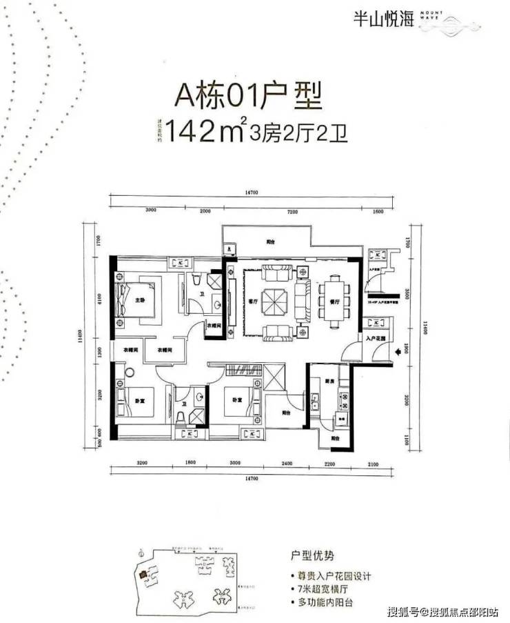 A栋01户型 建筑面积约142㎡ 3房2厅2卫