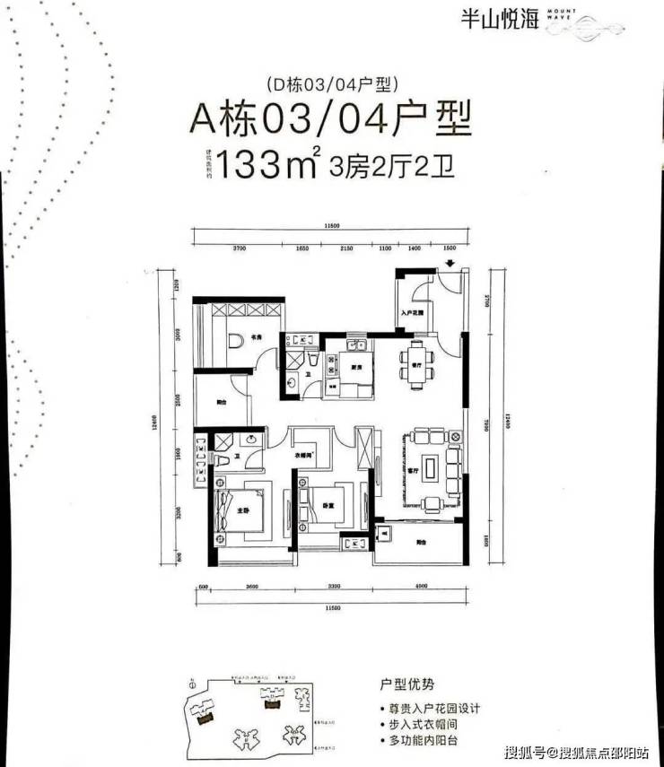 A栋03/04户型 建筑面积约133㎡ 3房2厅2卫