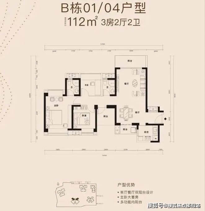 B栋01/04户型 建筑面积约112㎡ 3房2厅2卫