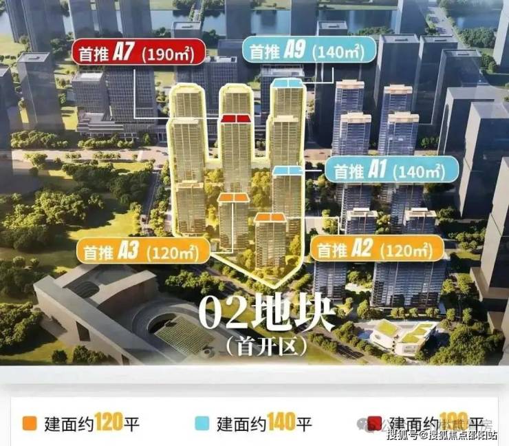 02地块规划了3个面积段,120-140-190平,都是南北对流双阳台四房。