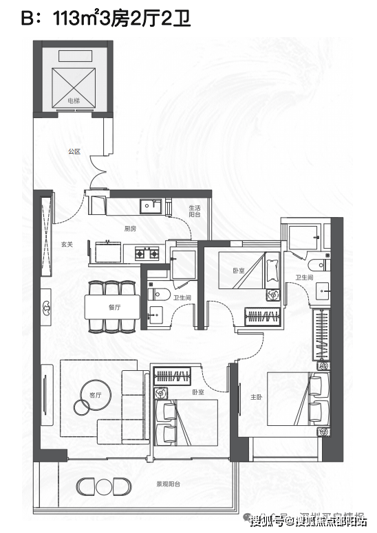 该项目将推出大约380套住宅,建筑规划包括2栋塔楼,其中高区采用4梯4户的设计,低区则为5梯5户,确保了每户都能享有独立电梯厅的配置。