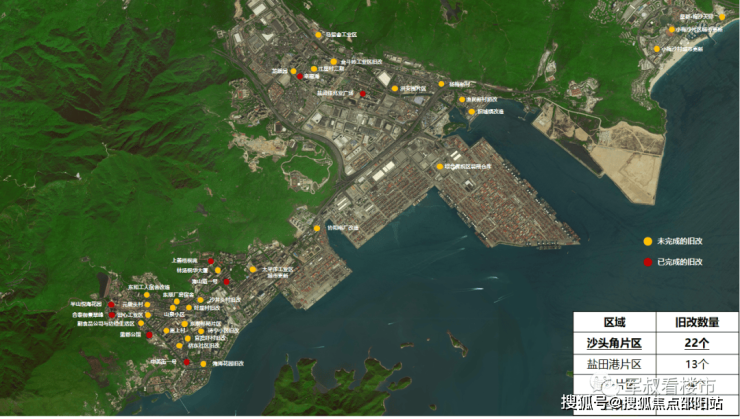 二、焕新核——约1公里集合约300万旧改 革变城市未来据各新闻媒体不完全统计,沙头角未来5年超22个项目,体量约300万平的旧改蓄势待发,鹏瑞、合正、卓越等品牌开发商抱团入驻,大大加速沙头角焕然速度,宜居指数向上。(数据来源:盐田十三五规划)