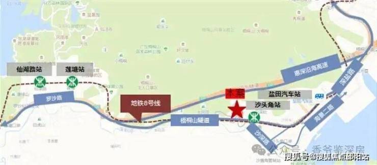 轨道交通——项目距离8号线沙头角站A2出口仅50,1站地铁到罗湖。深圳地铁8号线已于2020年10月底正式通车,与地铁豪宅线2号线无缝接驳,贯穿深圳东西。25抵达罗湖中心(万象城),35抵达福田中心(市民中心),快速接驳轨道交通路网,开启盐田地铁时代。