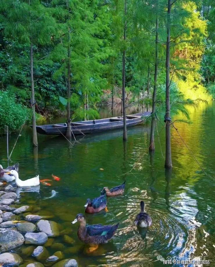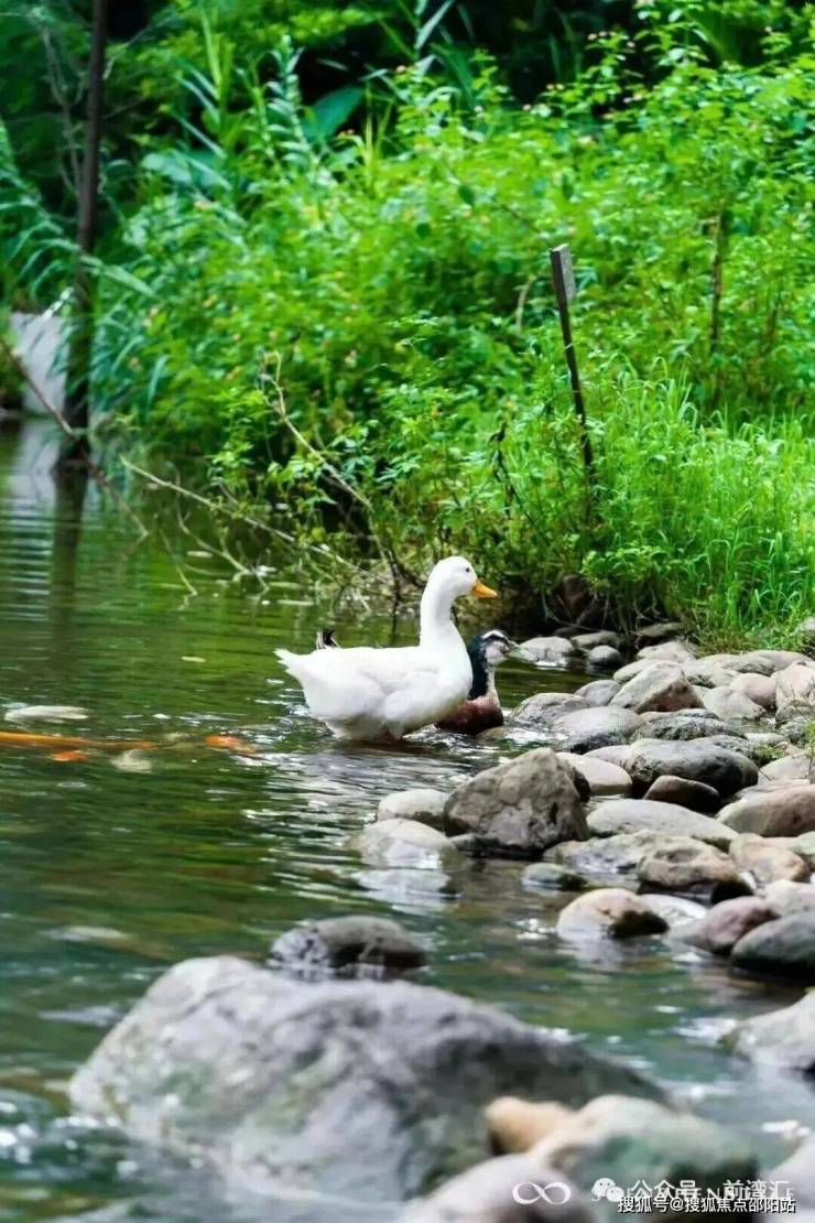 溪流潺潺,鸭群闲游