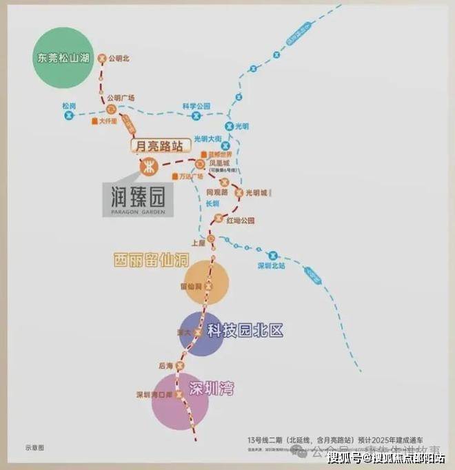 ② 交通:直线距离约600m可达在建地铁13号线月亮路站,1站至凤凰城,9站至南山;2025年将推动13号线二期(北延)建成通车(信息来源:宝安日报);近享3纵4横公路网,紧邻松白路、东明大道双城市干道,东明大道松白路至东长路段已通车;