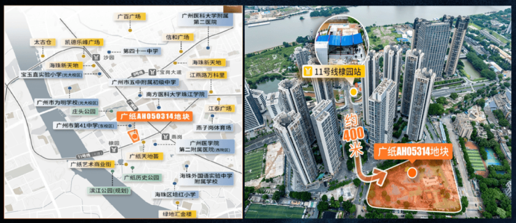 项目周边拥有约3.6万㎡的广纸历史公园、滨江公园(规划中)等绿色空间,步行约700米可达海珠庄头公园,周围自然环境丰富,提供了极好的生活和休闲体验。