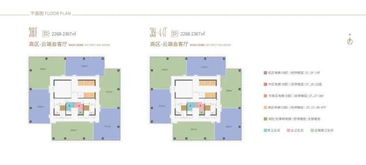 38-44F,是企业会客厅,约338-479㎡,45-47F,约1427-1596㎡(整层)