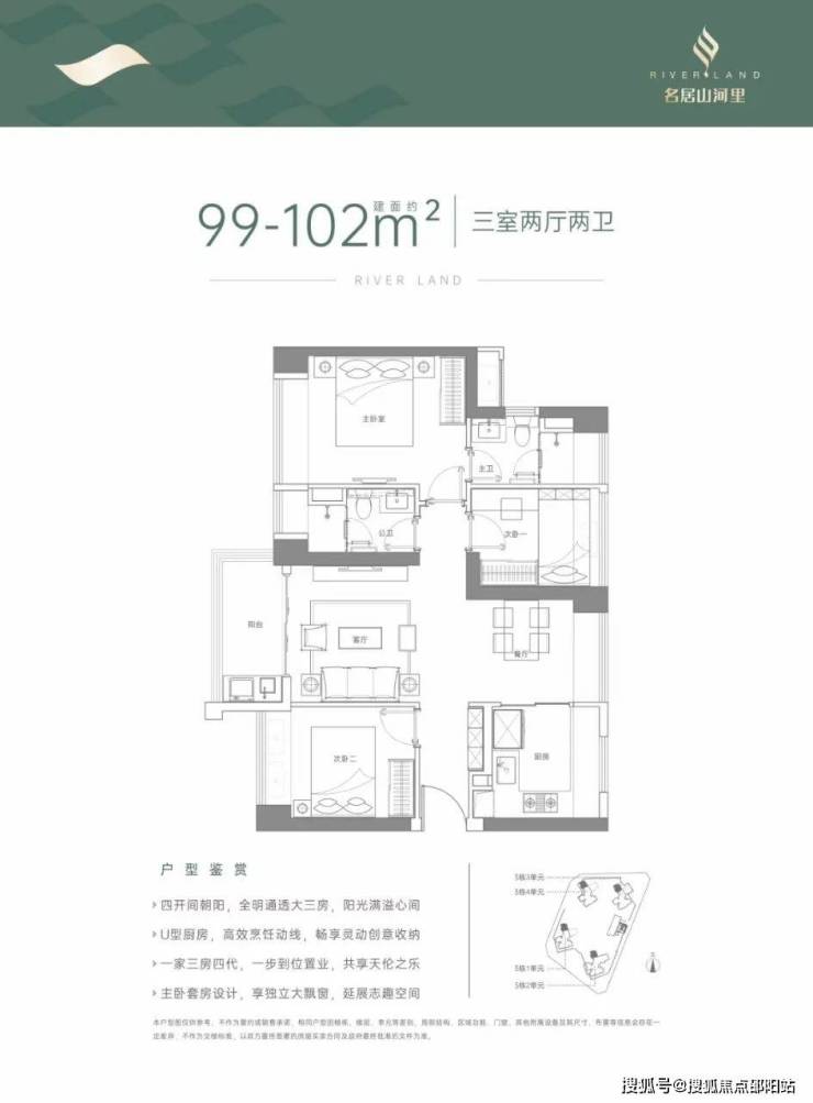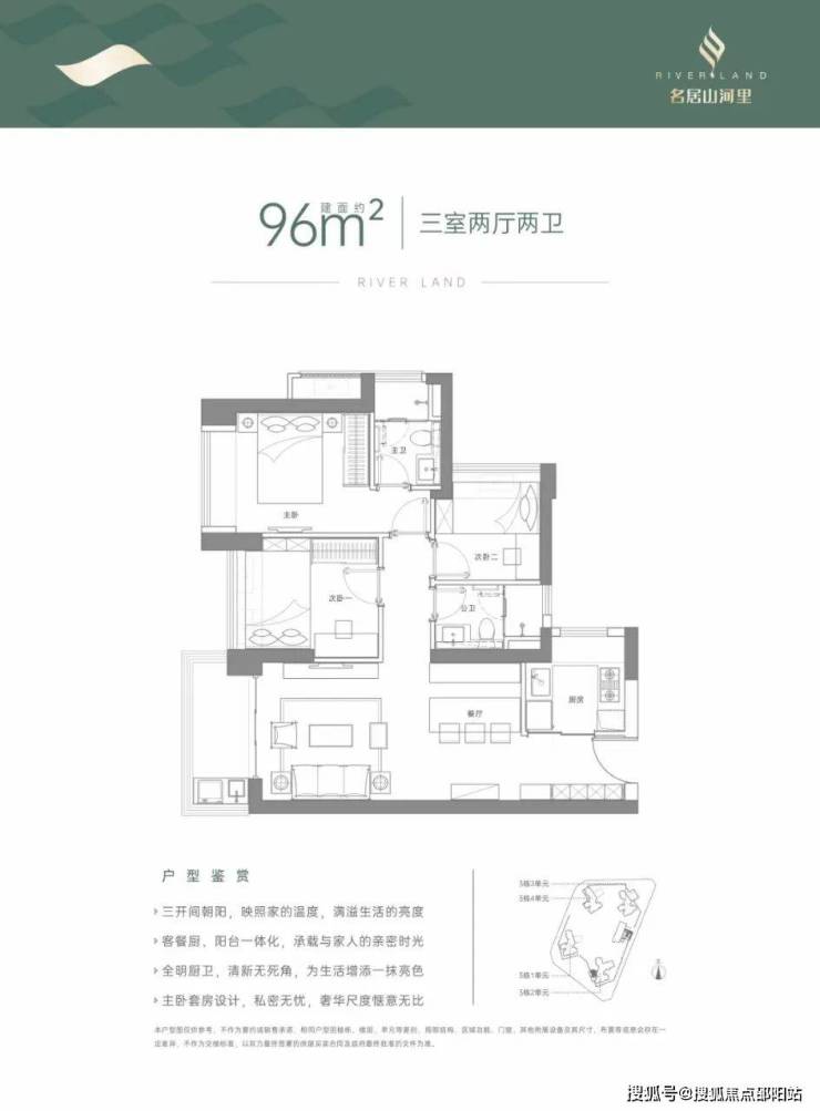 『水岸生活』 建面约75-141㎡ 精质舒居总建面约48万㎡山河大城崛起,匠筑城市封面级立面,毫米级精工雕琢空间。室内设计以人为本,s型冰箱位、LDK+G一体化设计更显奢阔,户型方正,户户朝南,大面积采光,带IMAX宽景阳台,俯瞰山河,诠释生活的至臻格调。