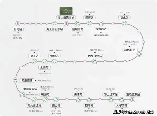 交通配套:项目出门就是12号地铁线“海上田园南站”,1站到国展北可换乘20号线,5站到福永可换乘11号地铁线,公路方面,距广深沿江高速入口仅500米,15分钟直达深圳湾;深中通道30分钟可至中山,1小时通达东莞滨海湾。此外,项目步行5分钟可达福永码头,乘船30分钟直达香港中环;距深圳宝安国际机场仅8公里,适合高频差旅人群。