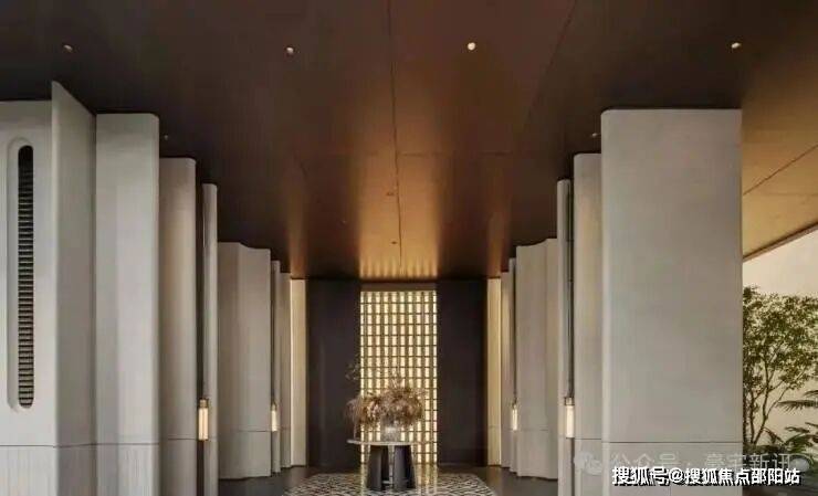 园林设计上,森系度假美学景观,公区质感跃级,优选石材、铝板、铝格栅等,入户大堂奢华感拉满。