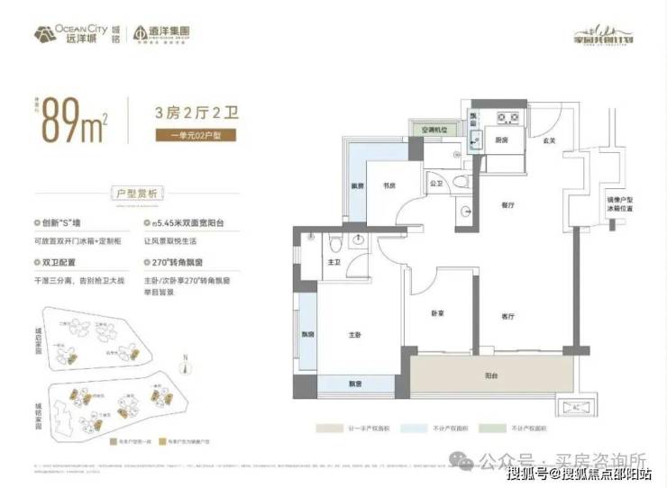 性价比最高1单元06户型89㎡三房两卫,总价227-255万