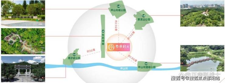 ■ 生态之境:聚龙山公园、坪山河湿地公园、燕子岭生态长廊形成天然氧吧,马峦山郊野公园的瀑布云海近在咫尺