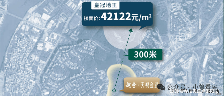 项目约300米处的皇冠地块,以42,122元/m2的楼面价被重金拿下,一举成为金沙洲价值地块。