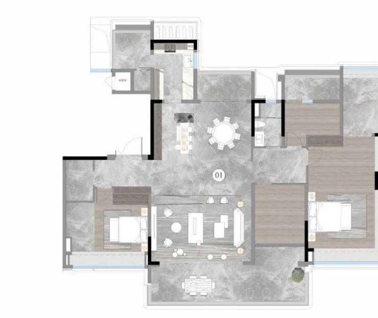 延续了一期的经典格局和品质,打造板式楼栋设计,独梯独户的豪宅私密性,并加强了三面采光,实现了餐客厅、主卧的南北对流。