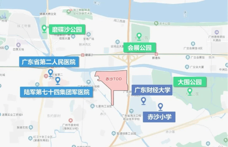 琶洲南TOD位于海珠区琶洲人工智能与数字经济示范区内,北至黄埔涌,东至华南快速路,南侧、西侧临赤沙涌,一江之隔是繁华的琶洲总部基地,地段价值那是数一数二。