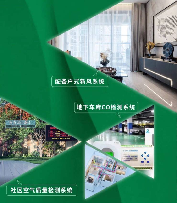 配备户式新风系统、社区空气质量检测系统、地下车库CO检测系统
