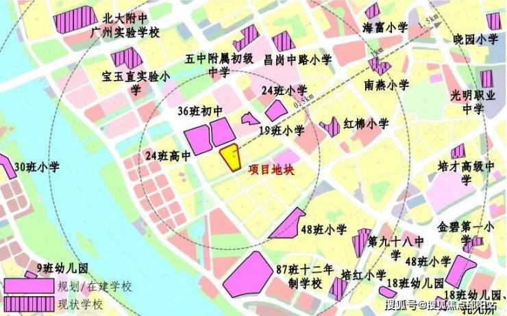 项目自身没有配建学校,但周边名校环伺,3km直线范围内包含广州市五中附属初级中学(省级)、广州市第41中学(省级)、宝玉直实验小学(光大校区)、江南外国语学校、工业大道中小学、红棉小学、海富小学、南燕小学、培红小学等9所学校环伺,拥有完善的区域教育体系。