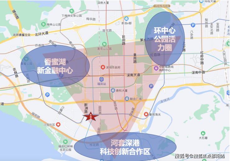 最新“十四五”规划中,福田定位湾区总部经济核心区,并聚焦河套深港科技创新合作区、香蜜湖新金融中心、环中心公园活力圈“三大新引擎”,项目位于三大引擎的三角地带核心位置,坐拥众多规划和资源。