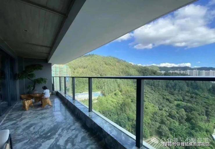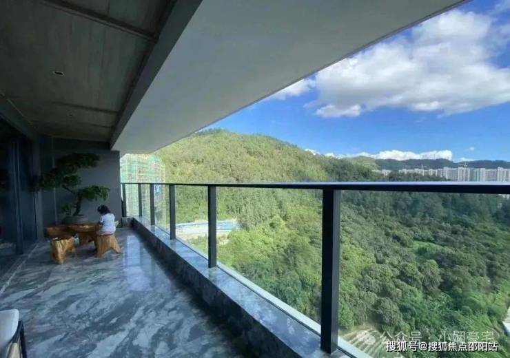 196㎡四居样板:南北通透格局,13米景观阳台如巨幕展开,全景玻璃幕墙将山景无缝引入室内