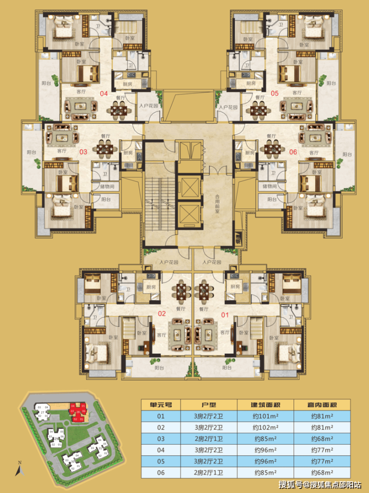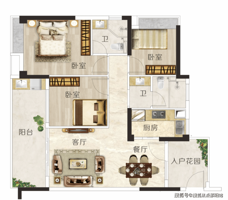 E户型 建面约106m² 3房2厅2卫