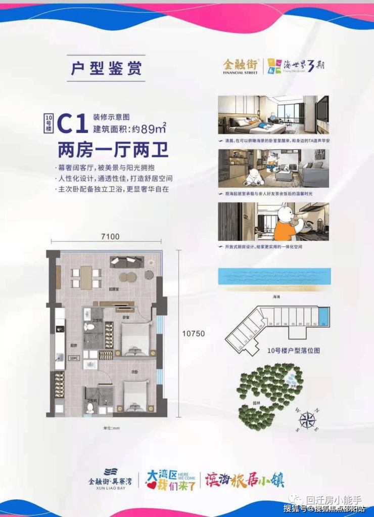 金融街·海世界舍弃50%的建筑面积,选用湾区罕见的单廊规划,构成前看海,后看山的 “山海通廊” 格式,以及最大化的景象占有。同时吸收过去10年榜首、二代产品的优点,规划出科学户型,面积小,总价低,建面约41-49㎡的单房、68㎡两居、89㎡的舒适2居,满意全家人休假需求。