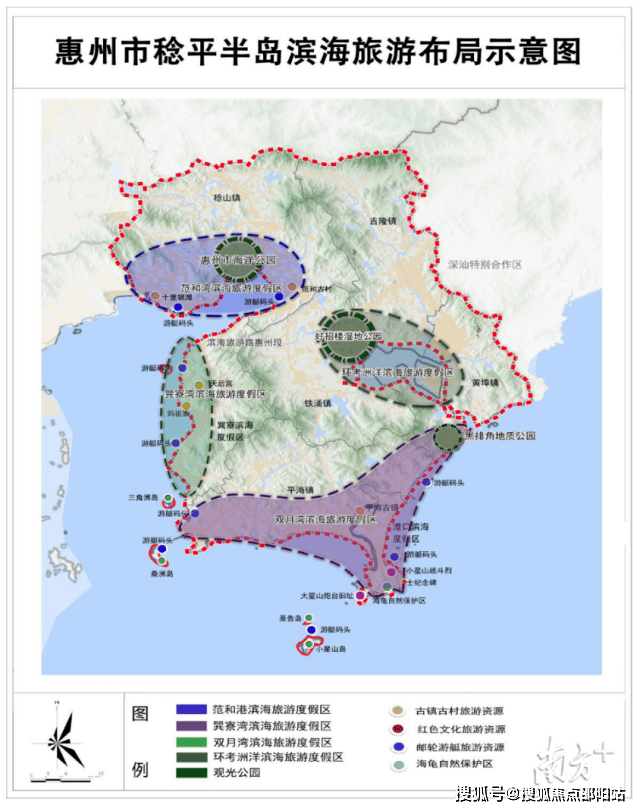 近年来,惠州将粤港澳大湾区、深圳先行示范区以及深圳都市圈等多重利好悉数收入囊中,在2020年六月份,惠州发改委在《惠州市稔平半岛发展规划(2020—2035年)》(公示稿)中提出要重点打造范和湾、巽寮湾、双月湾、考洲洋四大滨海旅游度假区,打造黄金滨海旅游带。