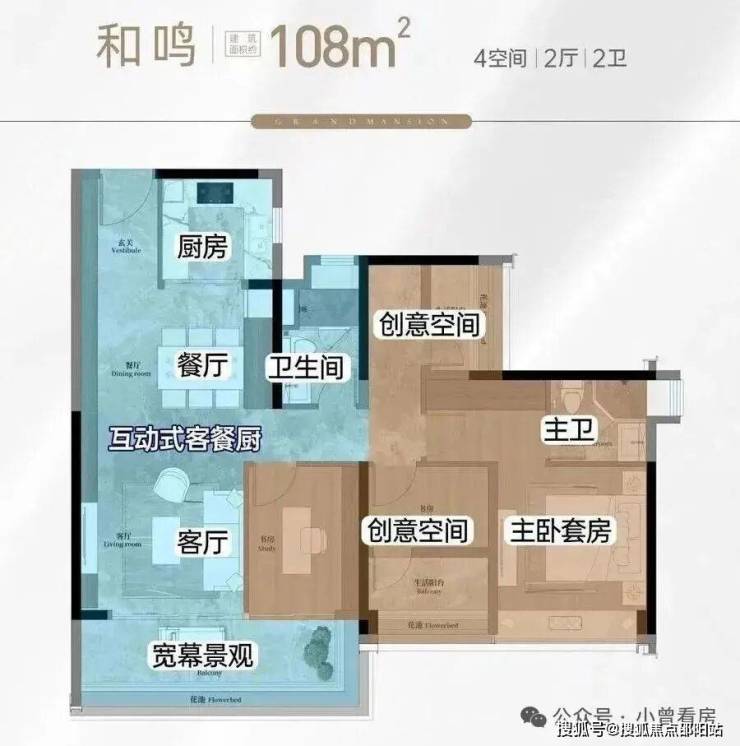 108平方和鸣:(2+2)室2厅2卫,超大阳台