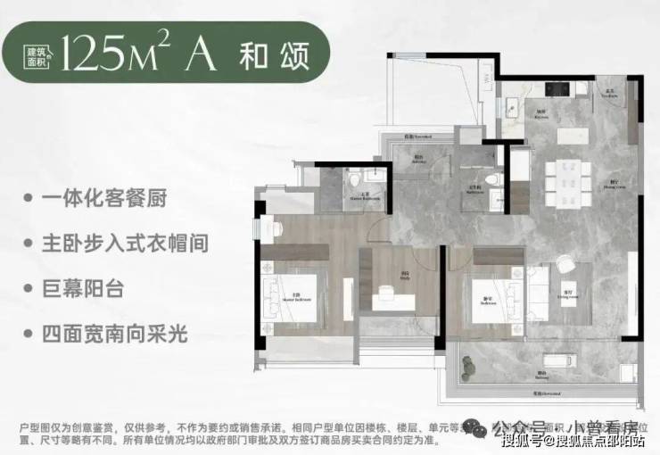 125平方和颂:(3+1)室2厅2卫,超大阳台