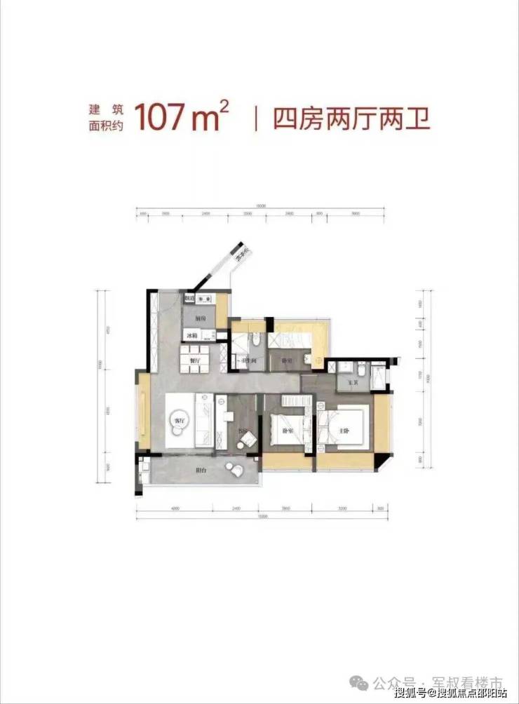 • 建面约107㎡的四房两厅两卫