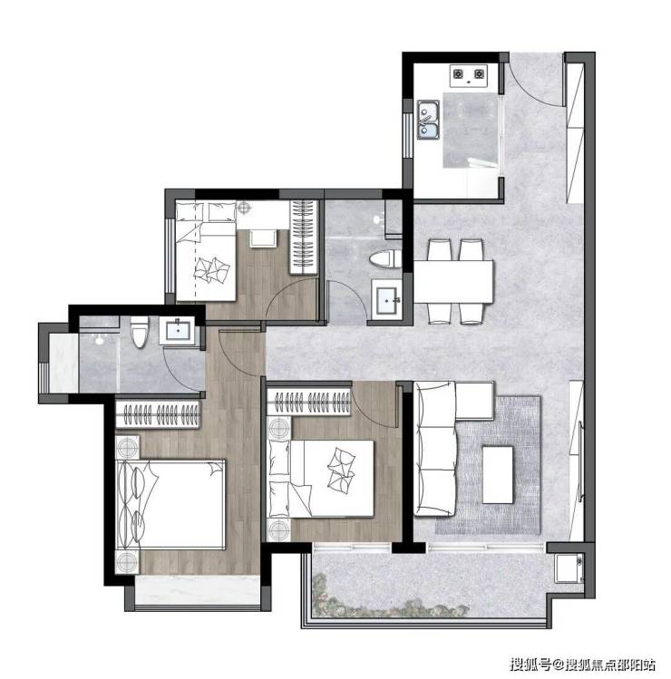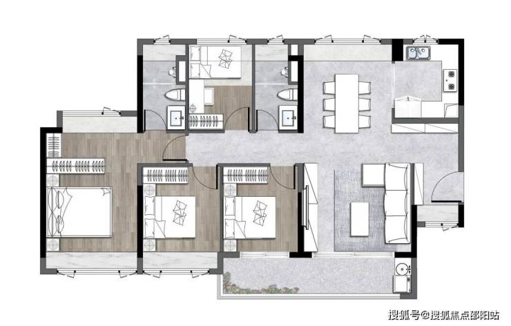 约24㎡主卧(含飘窗),带独立卫浴和衣帽间,私密性更佳,居住品质升级。此外还有三个次卧,完全能满足三胎时代,多代同堂的需求。