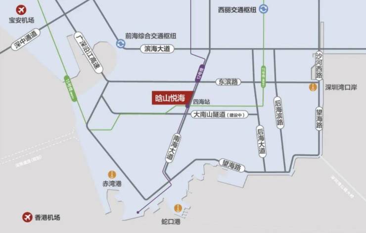 路网交通方面,经由南海大道连接广深沿江高速、后海滨路、沙河西路、后海大道、滨海大道;