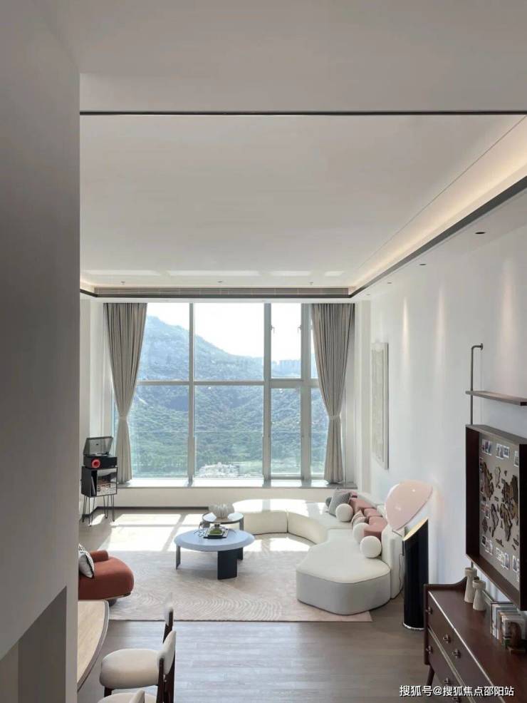 超高的客厅空间,给予开阔与自由之感,米色墙面在阳光的映照下,散发着温暖柔和的气息。当阳光毫无阻碍地照进客厅,整个空间仿佛被点亮,充满活力与生机。临山而居的房子是有灵性的,山的宁静与深邃融入其中,在这里,每一刻都能感受到自然的拥抱,心灵仿佛也得到了滋养。它不仅是住所,更是与自然和谐共生的美好空间。