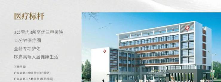 医疗配套:有广东省第二中医院(白云院区)、广东省第二人民医院(民航院区)、广州市白云区妇幼保健院(机场路院区)和景泰医院等医院。
