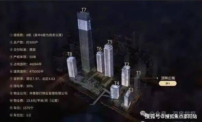 总建筑面积47.5万㎡,是集寰球商务、高端公寓、奢华酒店、高端商业于一体的高端城市综合体,特别重要的是还带深圳湾中小学学位。