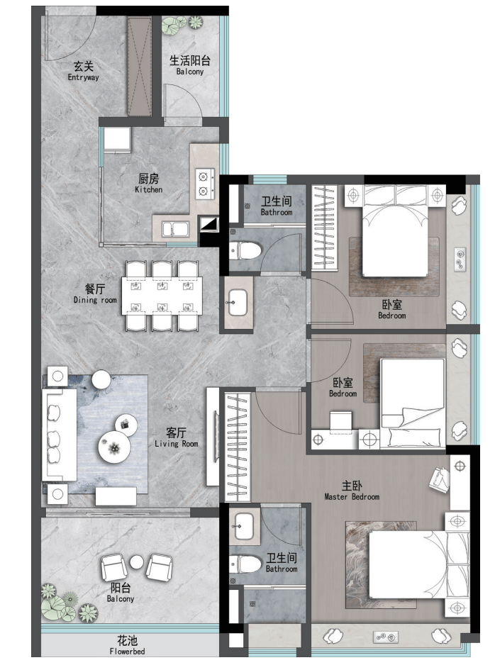 建面约107m² | 4空间二厅二卫