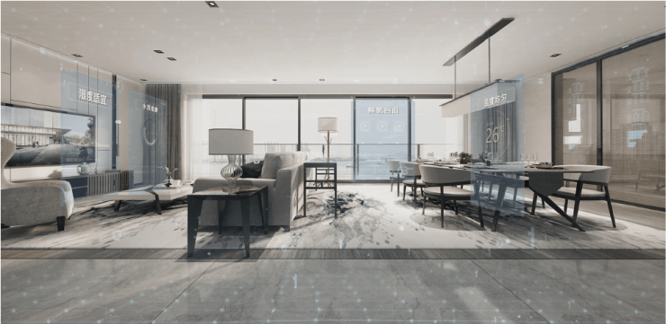 - 以无界科技理念打造健康共生社区,广州首个使用七恒全屋气候系统的项目,一键开启智能生活。