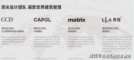 ②室内设计——全球排名前三的高奢酒店设计公司 CCD 香港郑中设计事务所,以及全球百大设计巨头矩阵纵横设计。