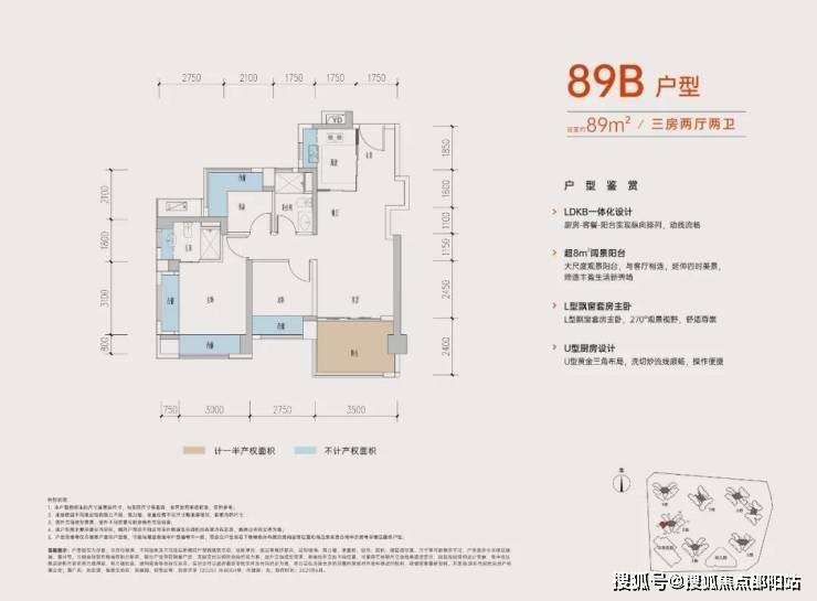 这个89B是本次2栋起步总价最低的户型,也是一个LDKB一体化设计的竖厅布局。