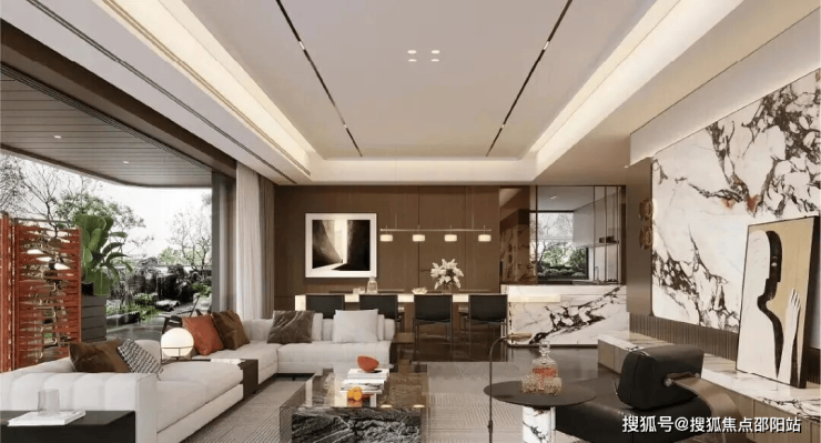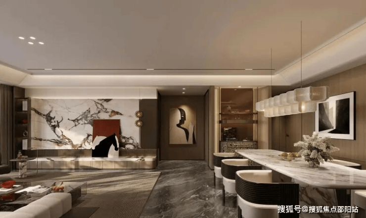 公区以海派为笔触,染现代之气韵,融汇成一方优雅生活的序章