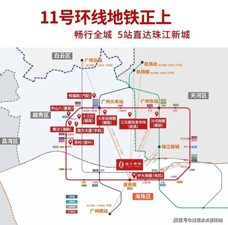 此外,项目15分钟生活圈内,坐享体育中心、珠江新城、客村、江南西、琶洲会展等6大商圈,庞大商业配套无与伦比。11号环线地铁正上盖 - 5站直达珠江新城广州首条环线地铁11号线逸景路站正上,负一层与地铁站联通,连接天河、越秀、荔湾、白云和海珠中心五区,串联广州十大专业市场,5站直达珠江新城,预计2022年底通车,届时珠江壹號业主将畅享便捷出行。