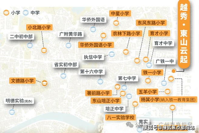 对口杨箕小学,已纳入铁一教育集团,除此,它的初中资源简直是“豪华阵容”。根据越秀区最新的小升初分组表,对口的初中是广州7中、13中、16中、培正中学、省实中学、铁一中学等。所以,在这里买房,起码12年的时间都不用担心教育问题。