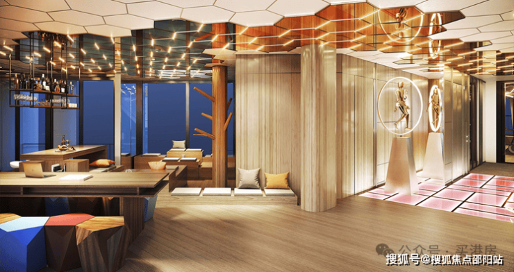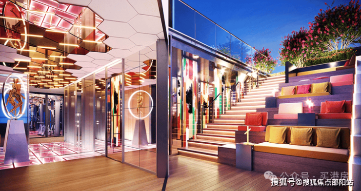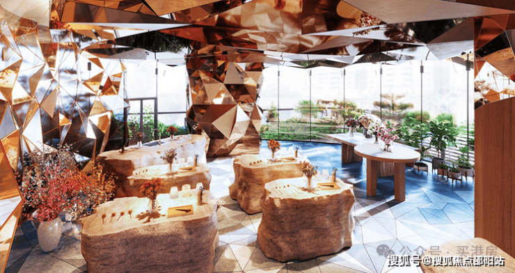 「隅聚所」的《绿桩》玻璃中树,以玻璃橱窗展示大树贯顶,阳光渗透将大自然活力引入室内,弥漫朝气生机,创造别具匠心的高尚氛围。「隅作坊」以立体几何镜面为设计主题,尽显时尚玩味。空间极具灵活性,让住户轻松举办不同类型活动。