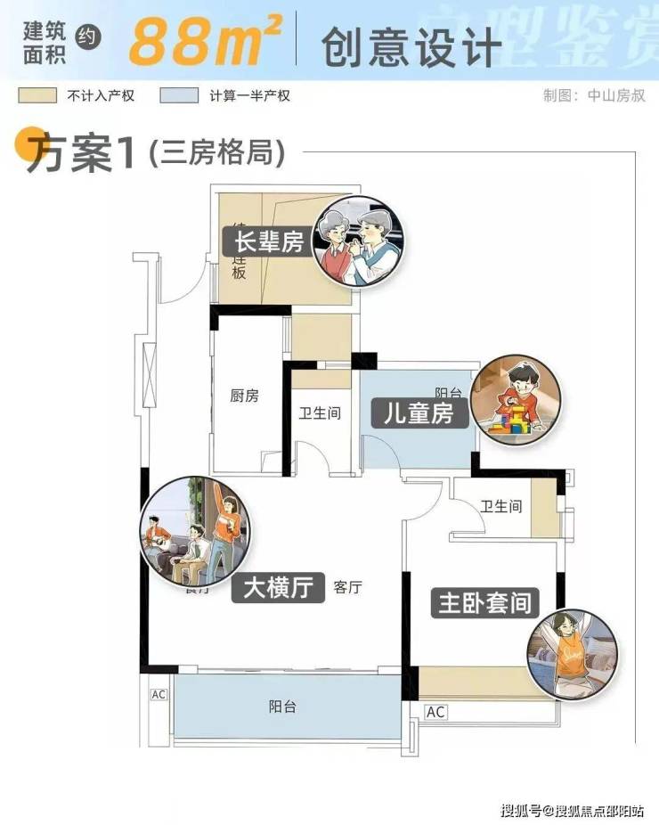 建面约88平,在有限的空间内,做出了三房+长阳台+主卧套间设计,全屋不及产权面积约20平,相当于送一个超级主卧,实用性拉满。