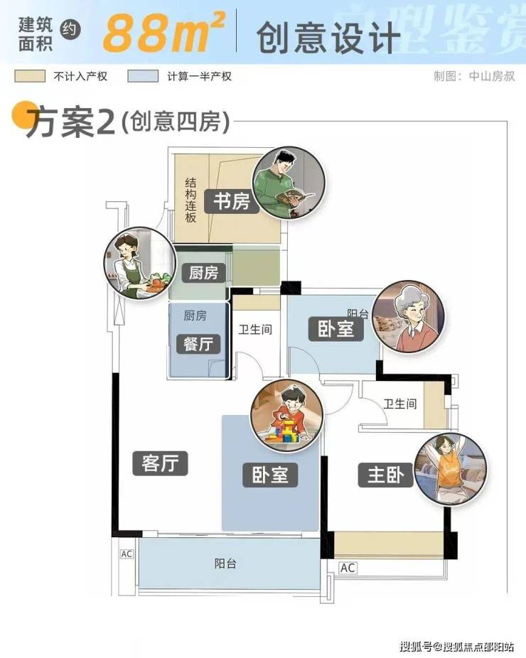若是做三房,客餐厅形成豪横大横厅,连通约5.4米景观阳台,加上主卧全景飘窗,全屋南向采光面长达9米,尽享阳光生活。长L型厨房+不及产权面积空间,可改造成厨房+餐厅的格局,大横厅可灵动设计成多一房模式,不到90平做四房,真的很绝。