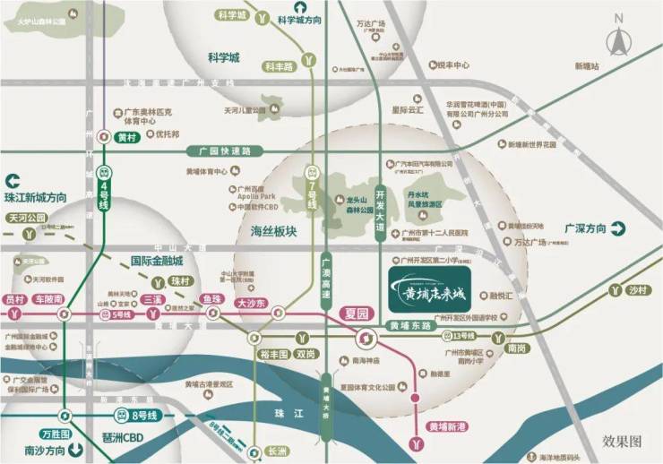 南部临近地铁5号线和13号线交汇的夏园地铁站,可有效支撑地区公共交通出行,一轨可直达珠江新城。