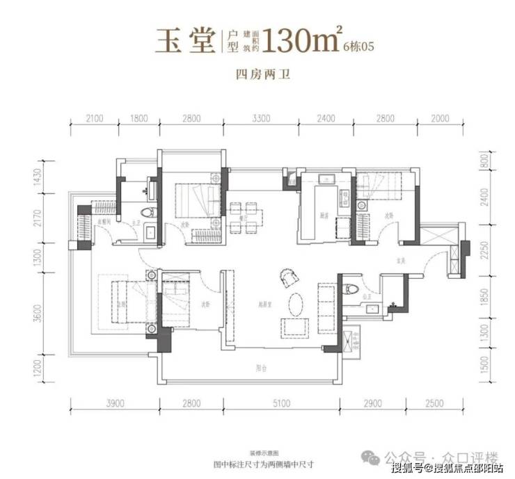 玉堂·建面约130㎡4房2厅2卫:南向四开间,约14.7米IMAX光幕,尺度自成