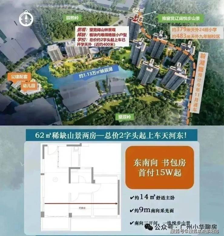 项目核心优势凸显,生态上坐拥1.75万㎡映辰湖一线湖景,周边环绕尖峰岭湖公园等四大生态公园,社区打造岭南新中式园林,绿化率35%-38%,实现湖居与山景双重生态体验;教育配套确定性强,配建6班公办幼儿园,明确纳入天河外国语学校智谷校区招生体系,构建12年全龄教育闭环,教育兑现度高。